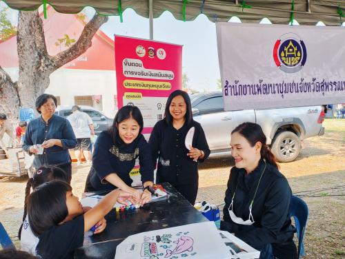 ในการนี้ นางเอกหทัย พนมอุปถัมภ์ พัฒนาการจังหวัดสุพรรณบุรี พร้อมด้วยผู้อำนวยการกลุ่มงานยุทธศาสตร์ และเจ้าหน้าที่พัฒนาชุมชน เข้าร่วมออกบูธให้บริการประชาชน รวมทั้งนำสินค้า OTOP ของดีในพื้นที่มาจำหน่าย เพื่อสร้างรายได้แก่ผู้ประกอบการ นอกจากนี้ ยังเปิดจุดให้บริการรับสมัครและตรวจสอบสถานะสมาชิกกองทุนพัฒนาบทบาทสตรี เพื่ออำนวยความสะดวกแก่กลุ่มสตรีในพื้นที่ พร้อมจัดกิจกรรมระบายสีและปั้นดินน้ำมันให้เด็ก ๆ ได้ร่วมสนุก
