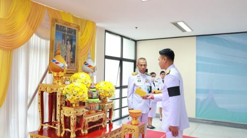 ในการนี้ ประธานในพิธีได้ถวายความเคารพและถวายธูปเทียนแพ เบื้องหน้าพระบรมฉายาลักษณ์พระบาทสมเด็จพระเจ้าอยู่หัว จากนั้นเจ้าหน้าที่ได้เชิญปฏิทินหลวงวางบนพานเบื้องหน้าพระบรมฉายาลักษณ์ เพื่อให้ผู้เข้าร่วมพิธีเข้ารับมอบปฏิทินหลวงพระราชทานตามลำดับ อันเป็นการแสดงออกถึงความจงรักภักดี และสำนึกในพระมหากรุณาธิคุณอย่างหาที่สุดมิได้